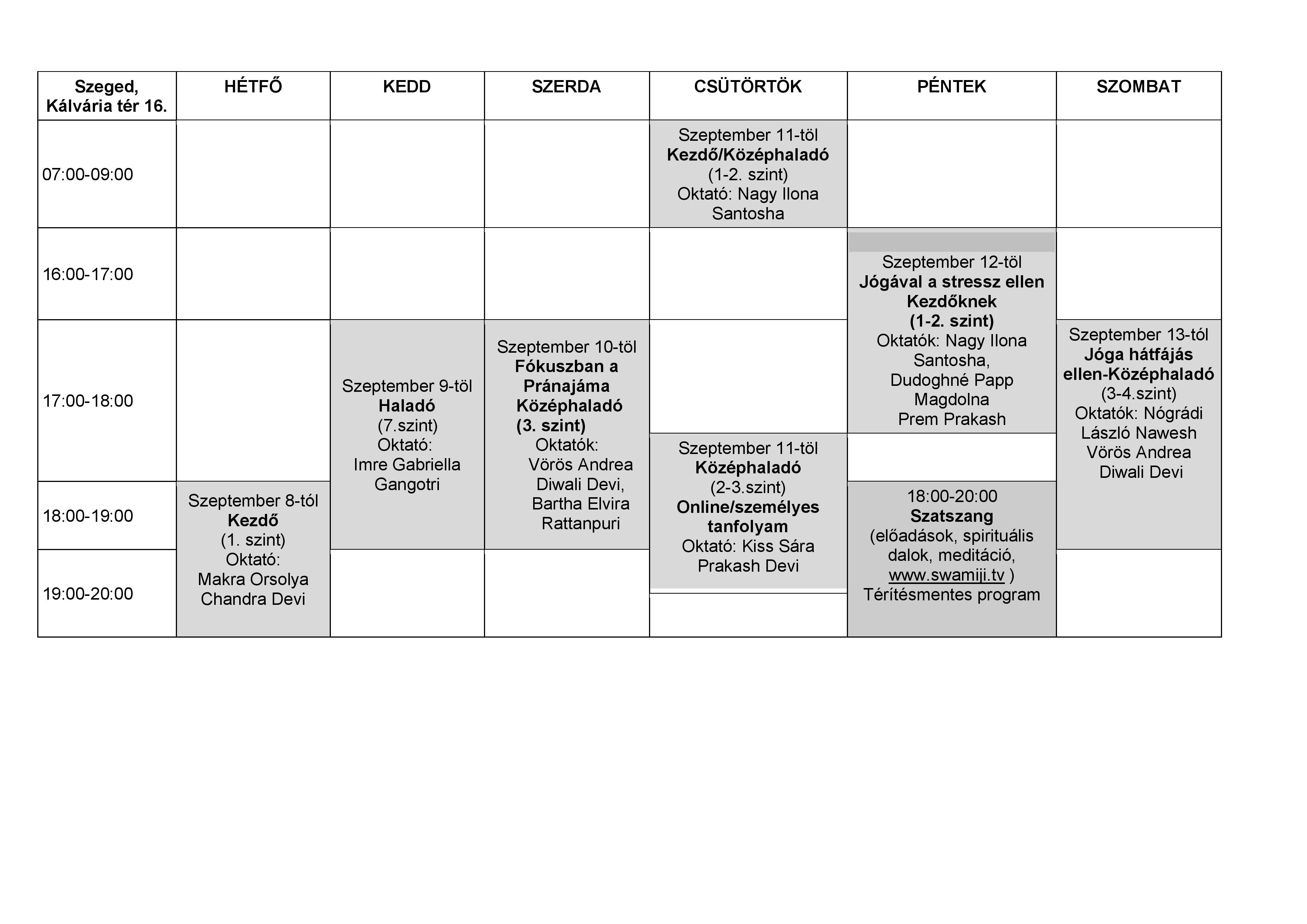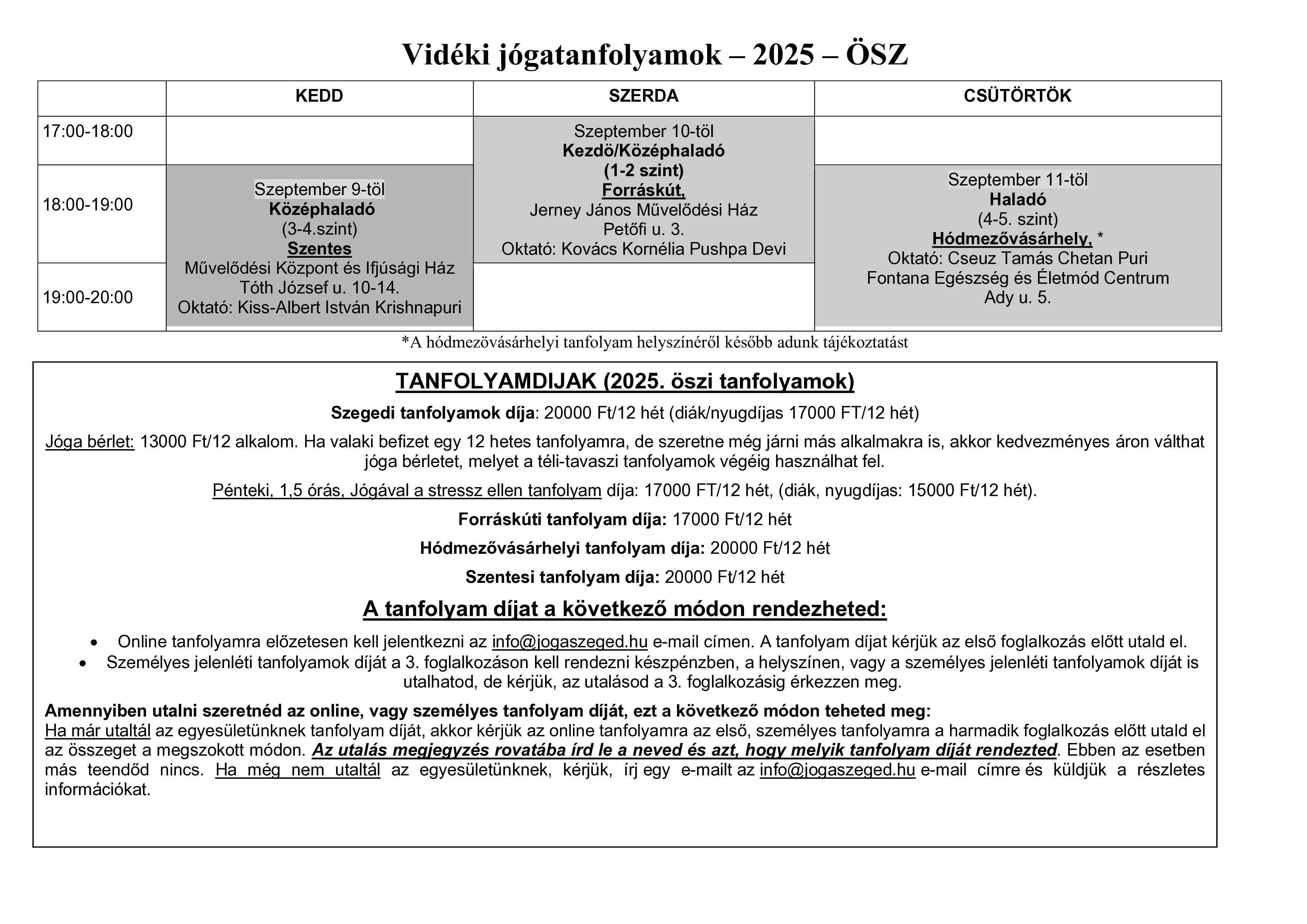 Öszi jógatanfolyamok a Jóga a mindennapi életben egyesület szervezésében: