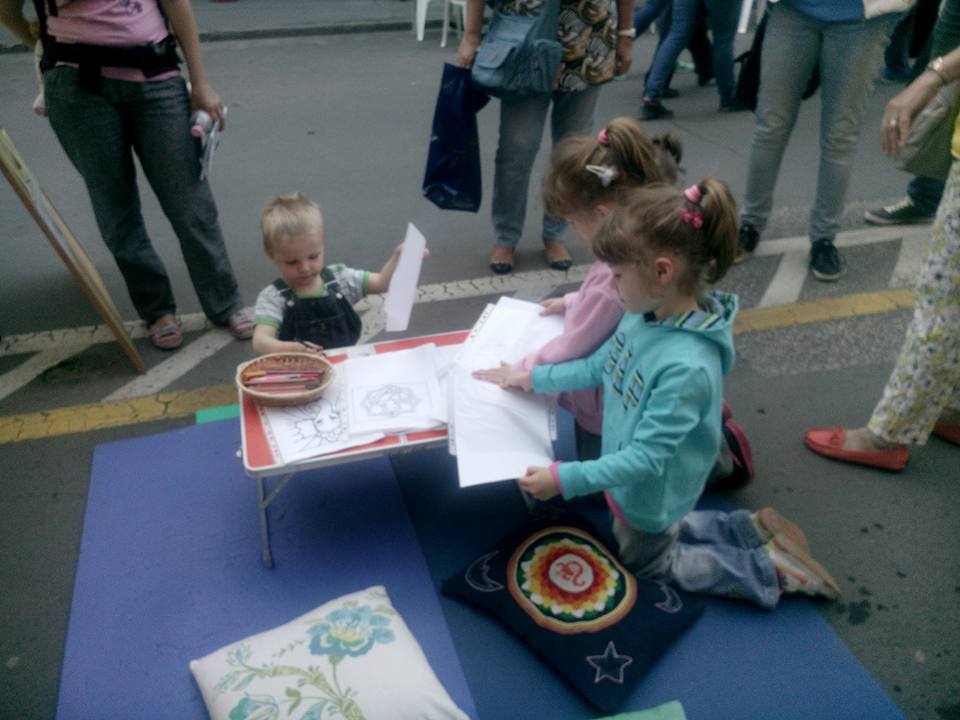A Jógasátorban a legkisebbek nagy örömmel színezték a mandalákat és vitték magukkal lobogtatva az OM-logós papírzászlókat. Igazi vásári hangulatban telt el a három nap.
