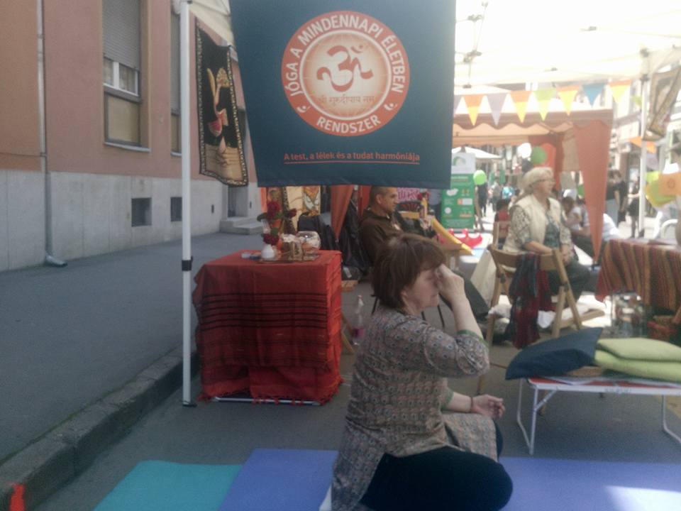 Sok-sok érdeklődő látogatta meg a sátrunkat. A jógagyakorlásokhoz a járókelők/érdeklődők ugyan nem csatlakoztak, de ha a Jógasátor jógaoktatói bemutattak néhány ászanát, sokan megnézték, mi is történik a matracon. Az információs asztalnál tájékoztatást adtunk az egyesület nyári programjairól. Kiemelten a június végi Jóga Nemzetközi Napjához kapcsolódó programokról és a július-augusztusban tervezett szabadtéri, ingyenes gyakorlásokról. (Mindkét rendezvényünkről hamarosan olvashatóak a részletek a honlapunkon.)