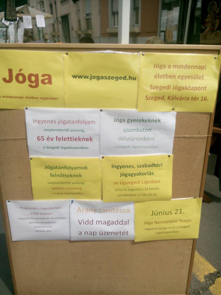 A Jóga a mindennapi életben egyesület idén második alkalommal vett részt a szegedi Hidivásár forgatagában. Az Oskola utcában állítottuk fel három napra a sátrunkat. Ez volt a vásárnak az a helye, ahol a különböző civil szervezetek bemutatkozhattak.