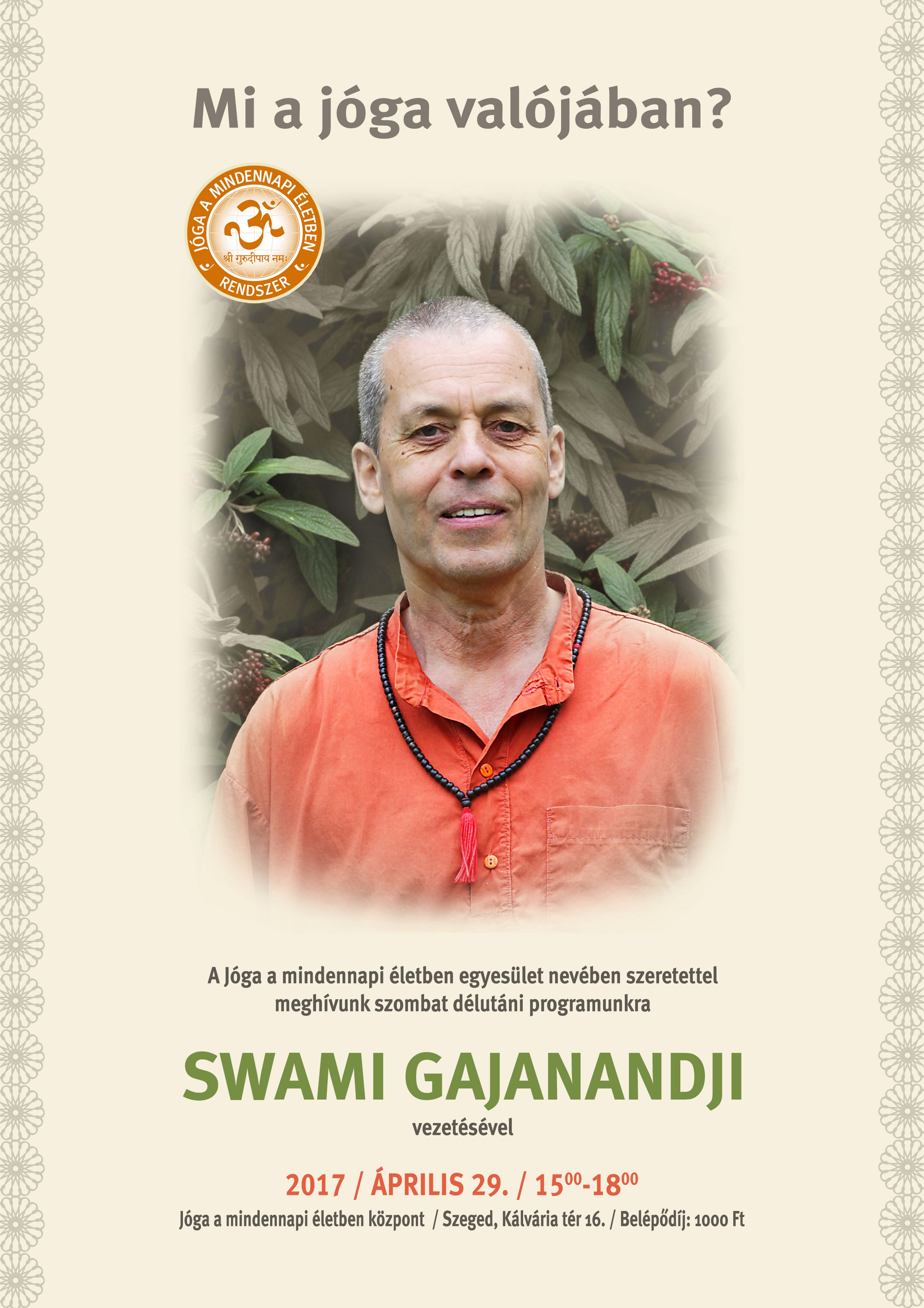 Április 29-én, szombaton a szegedi Jógaközpontba (Kálvária tér 16.) látogat Swami Gajanand.
