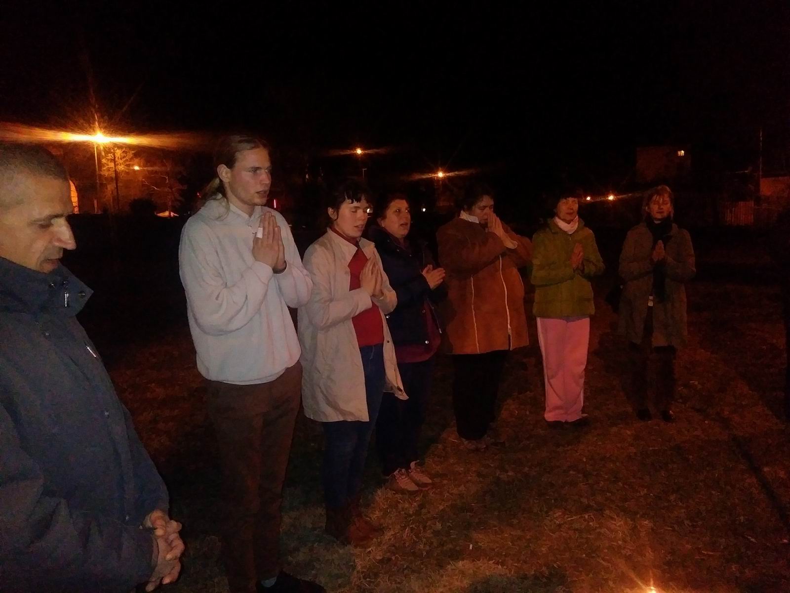 2019. március 1-én pénteken a szatszang után csatlakoztunk Vishwaguruji kezdeményezéséhez és ahogy a Jóga a mindennapi életben központokban világszerte, mi is gyertyát gyújtottunk a terrorizmus áldozataiért és virággal fejeztük ki békevágyunkat a jógaközpont előtt 2012-ben ültetett békefánál.