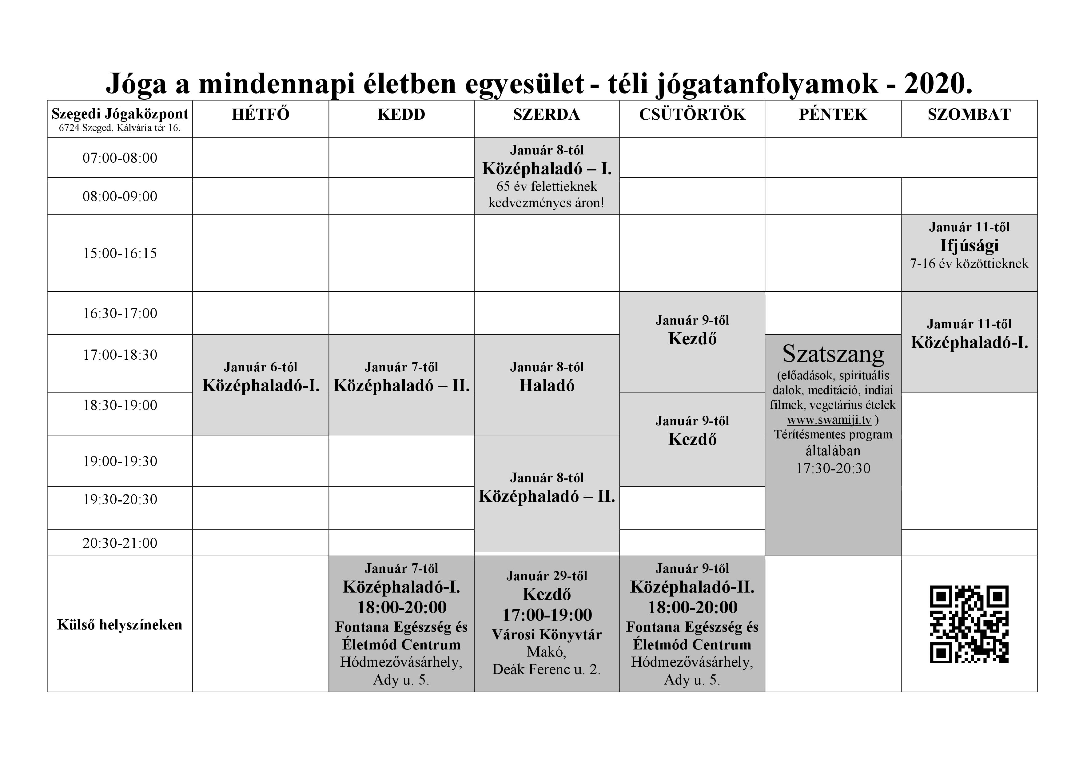 Tanfolyamaink részletes órarendje itt is elérhető: