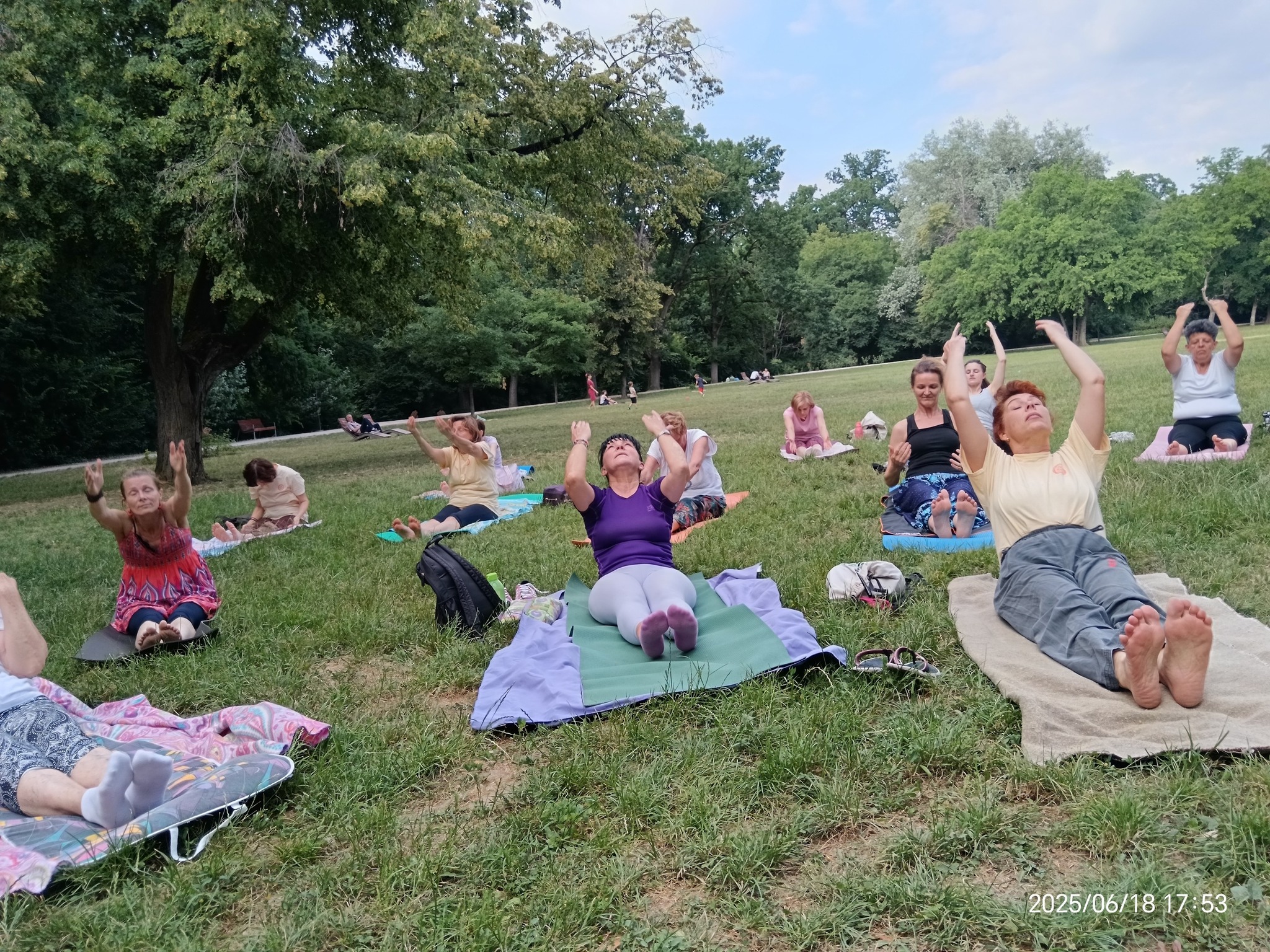 Este pedig a Ligetben volt szabadtéri jógafoglalkozás.