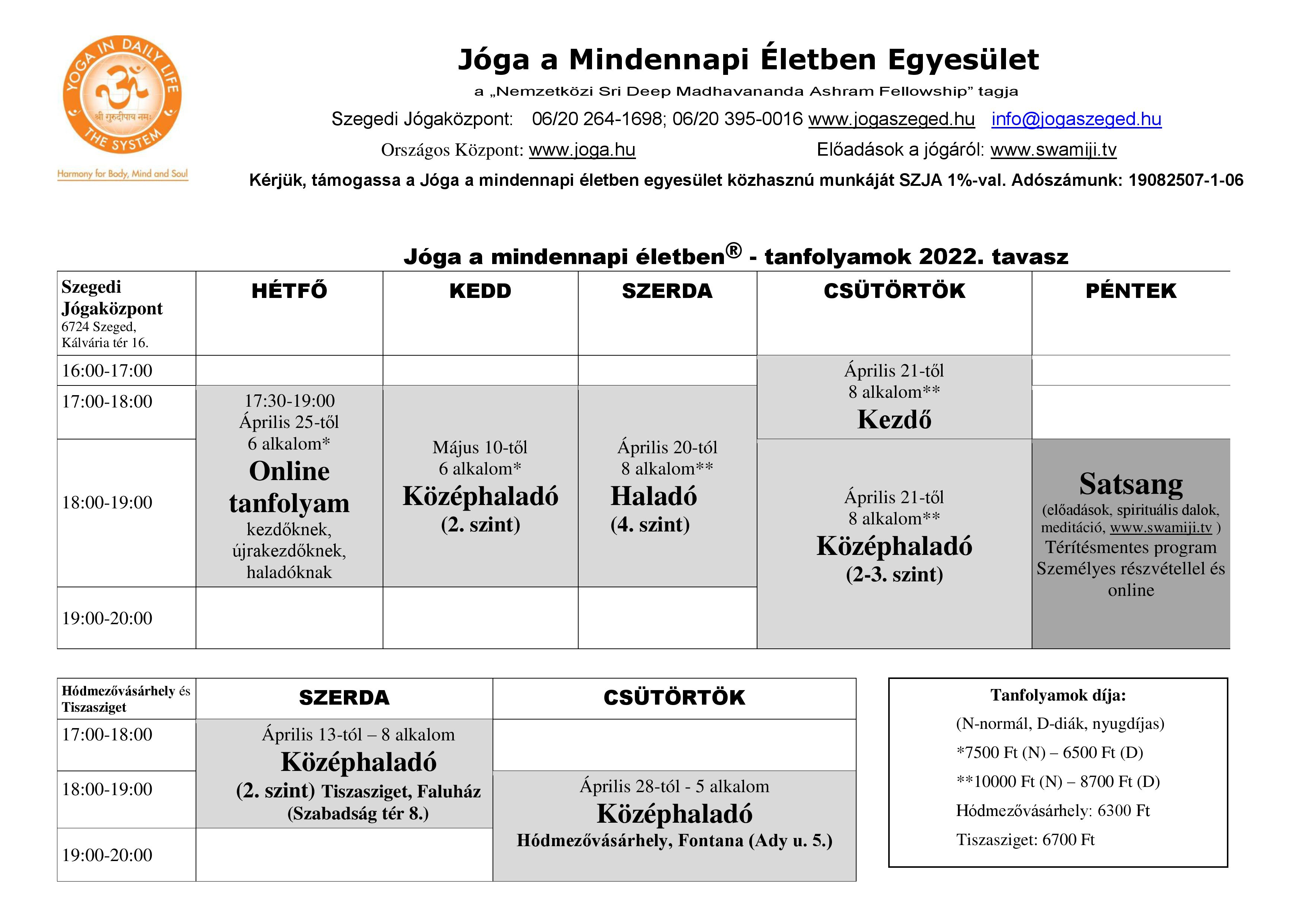 Tavaszi jógatanfolyamok Szegeden, Hódmezővásárhelyen és Tiszaszigeten
